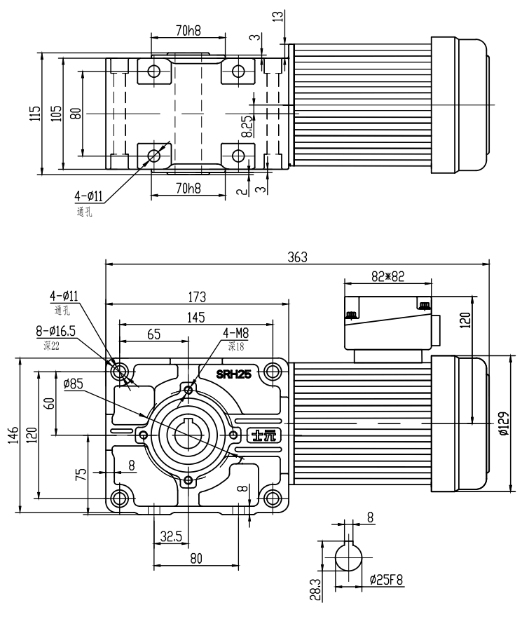 SRH25-400W雙曲面直角軸減速電機安裝尺寸